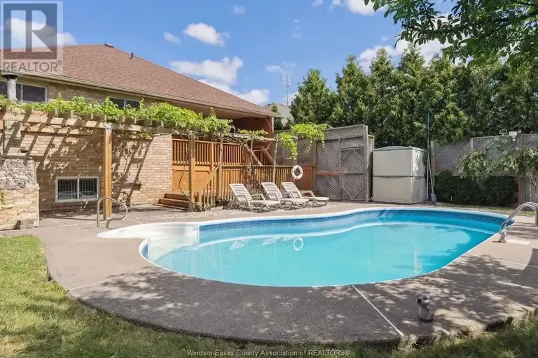 Full brick California-style raised ranch located on a cul-de-sac in South Windsor's prestigious Southwood Lakes neighbourhood. The 12-foot ceilings create a grand first impression the moment you walk in. Features a backyard oasis with an in-ground pool, landscaping and a two-tier sundeck. Enjoy a nice stroll by Southwood Lakes, plenty of Windsor's best amenities and hobbies nearby, quick access to the 401, and best school districts. The layout provides 3 bedrooms upstairs, 2 full baths, a large basement family room and tons of storage. (id:61160)